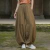 Johnature Женские винтажные шаровары с эластичной талией, осенние однотонные лоскутные свободные длинные брюки