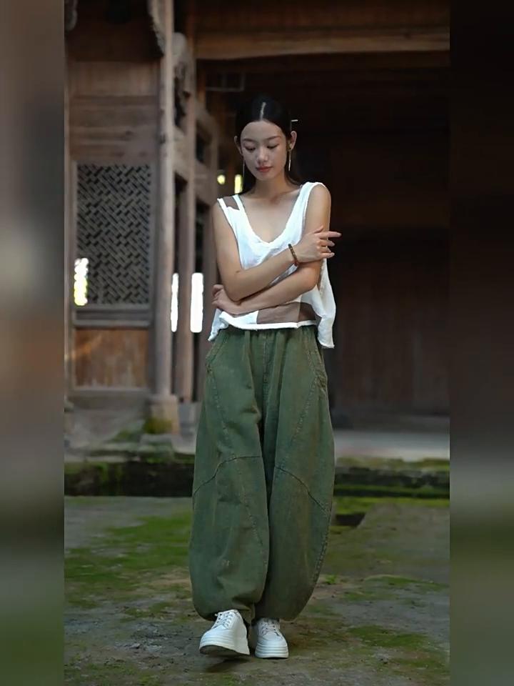 Женские винтажные шаровары Johnature, эластичные осенние однотонные свободные длинные брюки в стиле пэчворк с резинкой на талии — купить товар онлайн с бесплатной доставкой по всему миру!