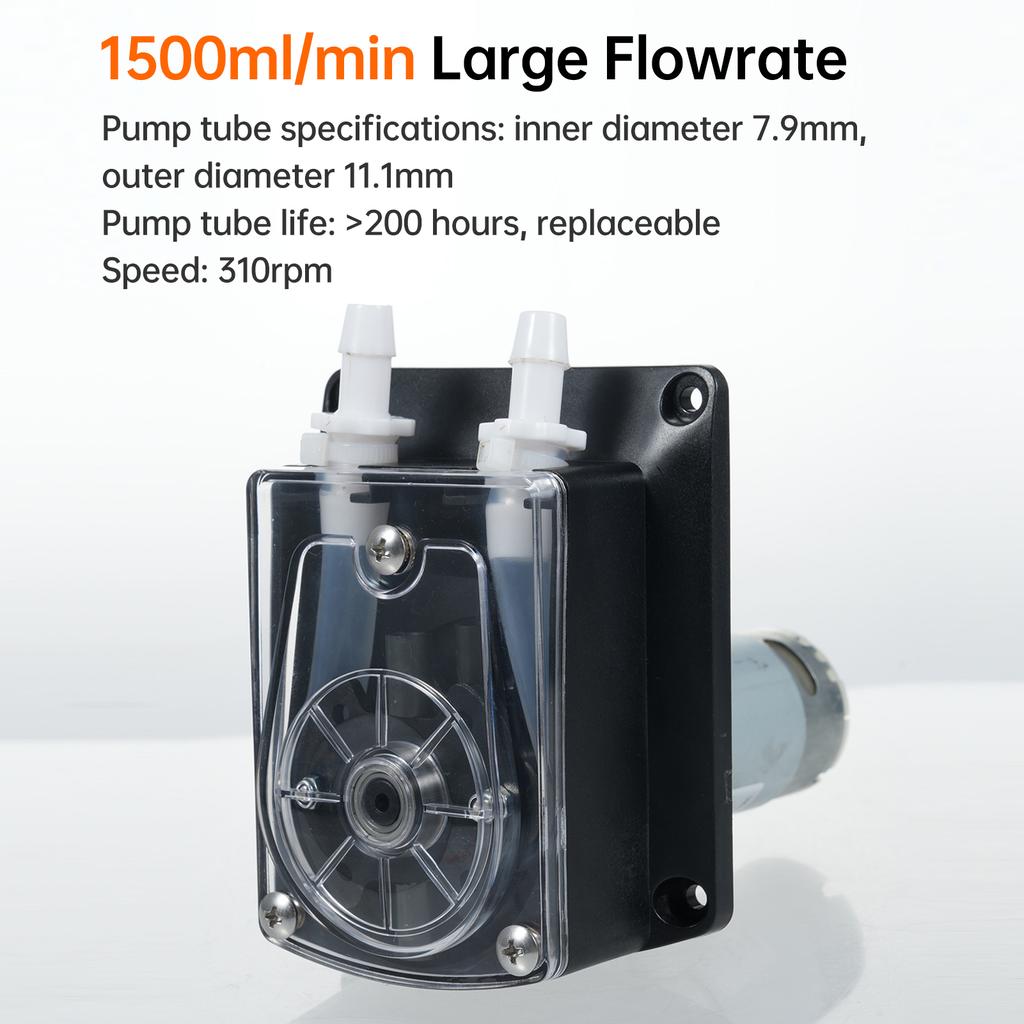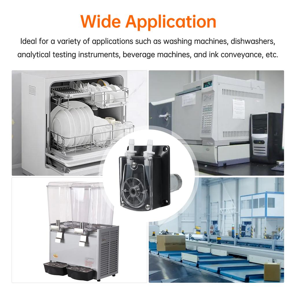 ??Перистальтический насос HighFlow: Идеально подходит для различных применений, включая стиральные машины, посудомоечные машины, аналитические испытательные приборы, машины для приготовления напитков и системы подачи чернил.. Этот насос обеспечивает номинальный расход 1500 мл/мин с фактическим отклонением расхода +10 процентов.?Трубка насоса пищевого класса: Трубка насоса изготовлена из прозрачного силикона, специально разработанного для перистальтических насосов пищевого класса.. Внутренний диаметр составляет 7,9 мм, а внешний — 11,1 мм, что обеспечивает прочность и долговечность со сроком службы более 200 часов.. Для большего удобства трубку можно заменить.?Прочный и устойчивый к ржавчине: Насос