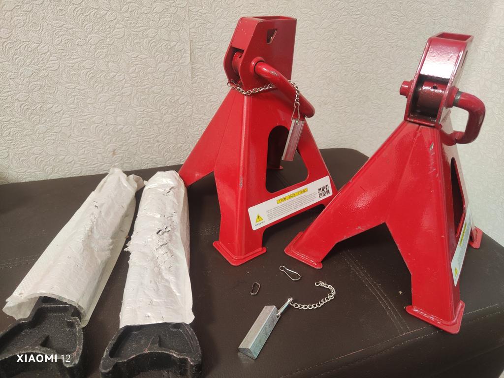 2 комплекта стальных домкратных стоек с фиксатором и опорной площадкой, высота подъема 29,543 см11,6116,93 дюйма3 тонны