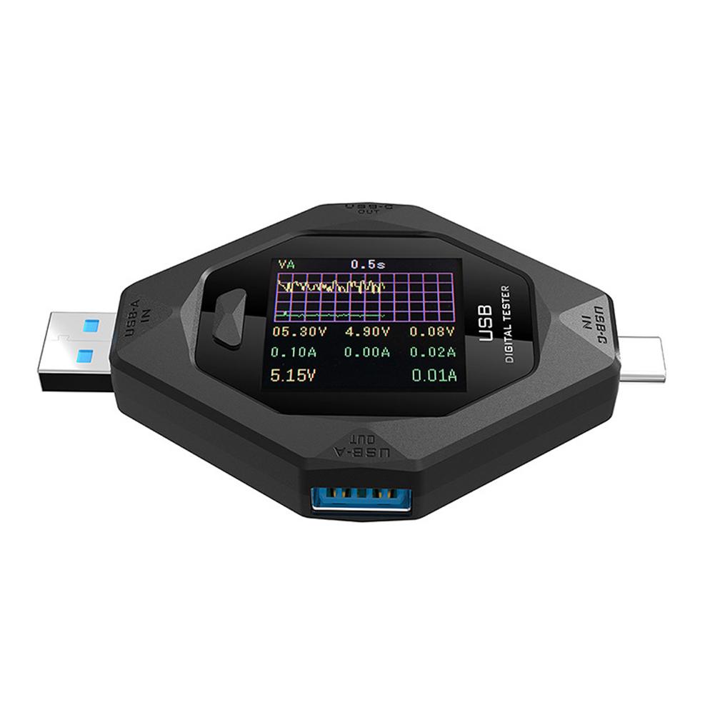 Комплексные возможности тестирования: Его можно использовать для определения максимального тока беспроводного зарядного устройства и проверки емкости и мощности мобильного источника питания.. Он определяет состояния и процессы зарядки для устройств USB и TypeC и отображает основные параметры зарядки, такие как ток, напряжение, мощность, емкость и сопротивление, что делает его важным инструментом для оценки производительности зарядных устройств и кабелей.