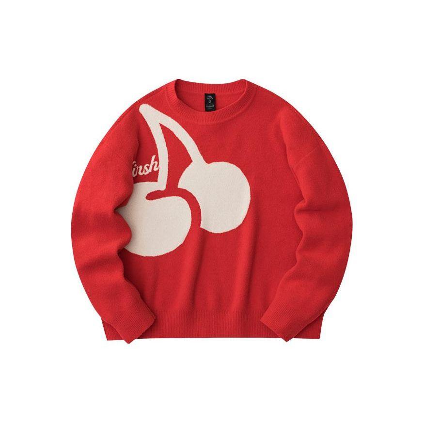 Anta X Kirsh Collaboration Cherry Letter Длинный рукав свитер-пуловер Женская толстовка Deep-Red 962348725-4