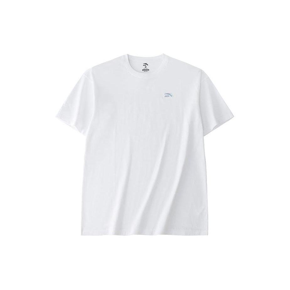 Anta Однотонный повседневный спортивный свитер с круглым вырезом, короткий рукав, спущенные плечи, футболки унисекс, цвет «белоснежный» 972428109-1