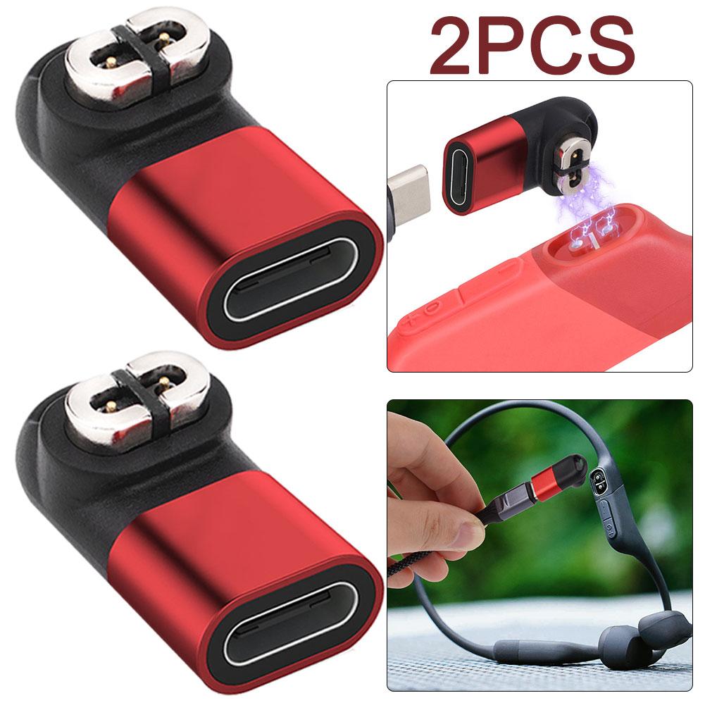 2 шт. USB C адаптер зарядное устройство конвертер для AfterShokz OpenComm ASC100SG/C102 (красный)