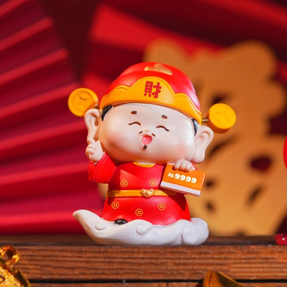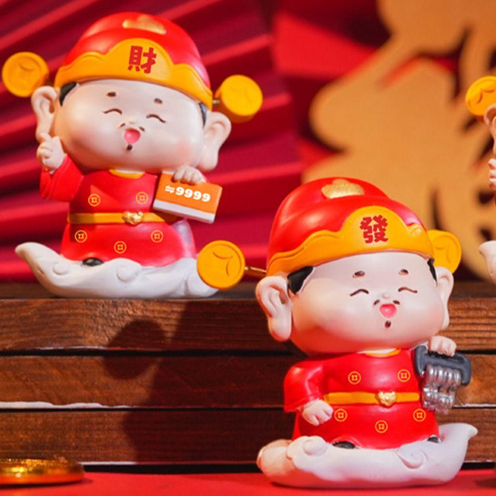 Cartoon Mini God of Wealth Figurine Resin Lucky New Year Statue Home Office Accessories