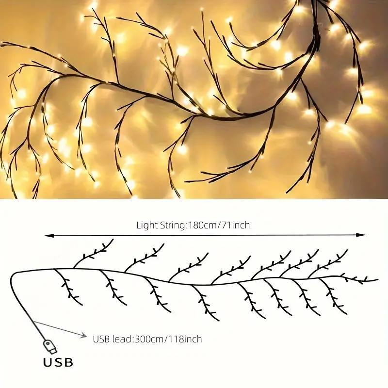 1 шт. Украшение комнаты из лозы ивы 180 см/70,8 дюймов Гибкие волшебные гирлянды с USB 96 светодиодными мерцающими гирляндами для веток деревьев