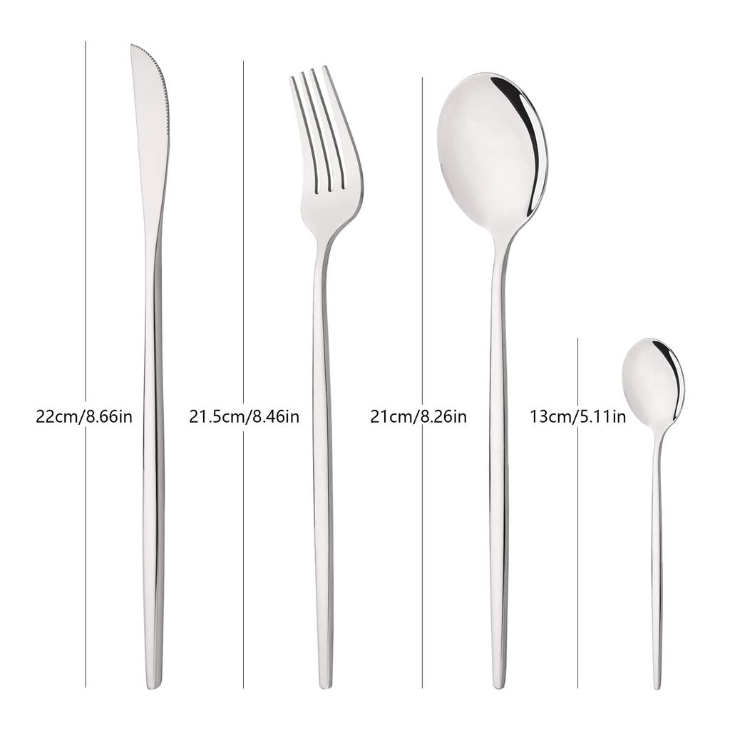 24 шт. Серебряный набор столовых приборов из нержавеющей стали, нож, вилка, ложка, столовая посуда, зеркальный набор столовых приборов, свадебное, день рождения, столовое серебро