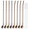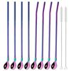 10 шт. многоразовая ложка-соломинка из нержавеющей стали, цветная металлическая соломинка, коктейльная ложка-соломинка, аксессуар для помешивания кофе в молочном баре