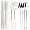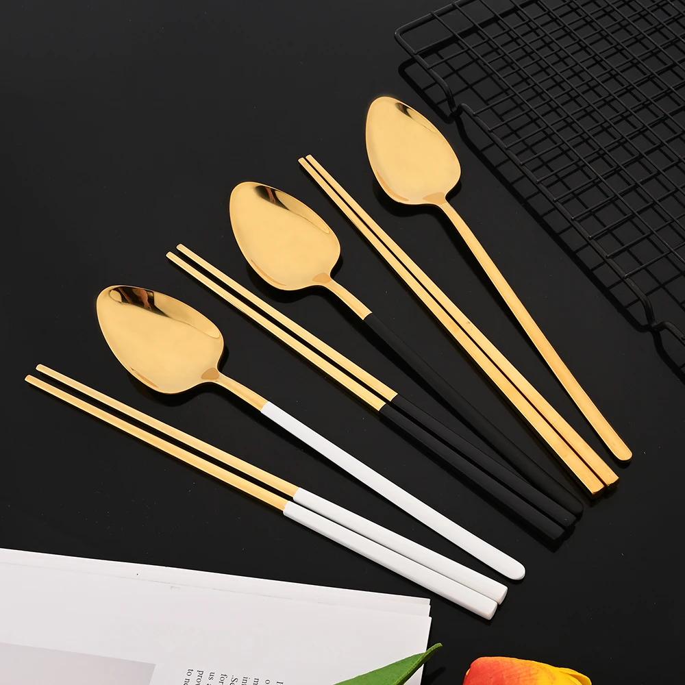 Серебряный набор столовых приборов из нержавеющей стали, палочки для суши, набор столовых приборов из 12 предметов, корейские палочки для еды, вилка, ложка, столовая посуда