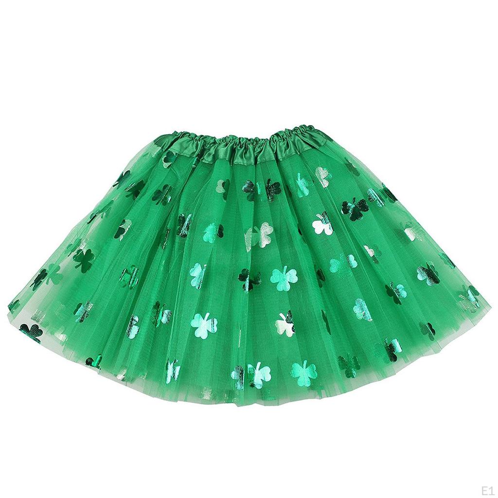 - 【Уникальный праздничный дизайн】: Юбка из зеленого тюля украшена креативными пайетками в виде клевера и узорами, что делает ее идеальным вариантом для празднования Дня Святого Патрика, добавляя очарования и стиля вашему праздничному наряду.