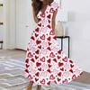 Женские модные повседневные плиссированные платья с V-образным вырезом и завязками на День святого Валентина с принтом