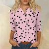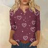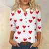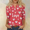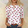 Женская мода повседневная блузка с пуговицами и рукавом 3/4 с принтом ко Дню святого Валентина