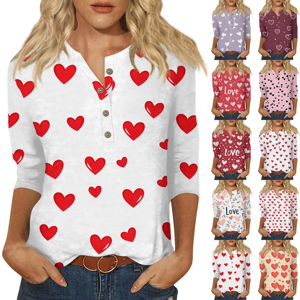 Женская мода повседневная блузка с пуговицами и рукавом 3/4 с принтом ко Дню святого Валентина — купить товар онлайн с бесплатной доставкой по всему миру!