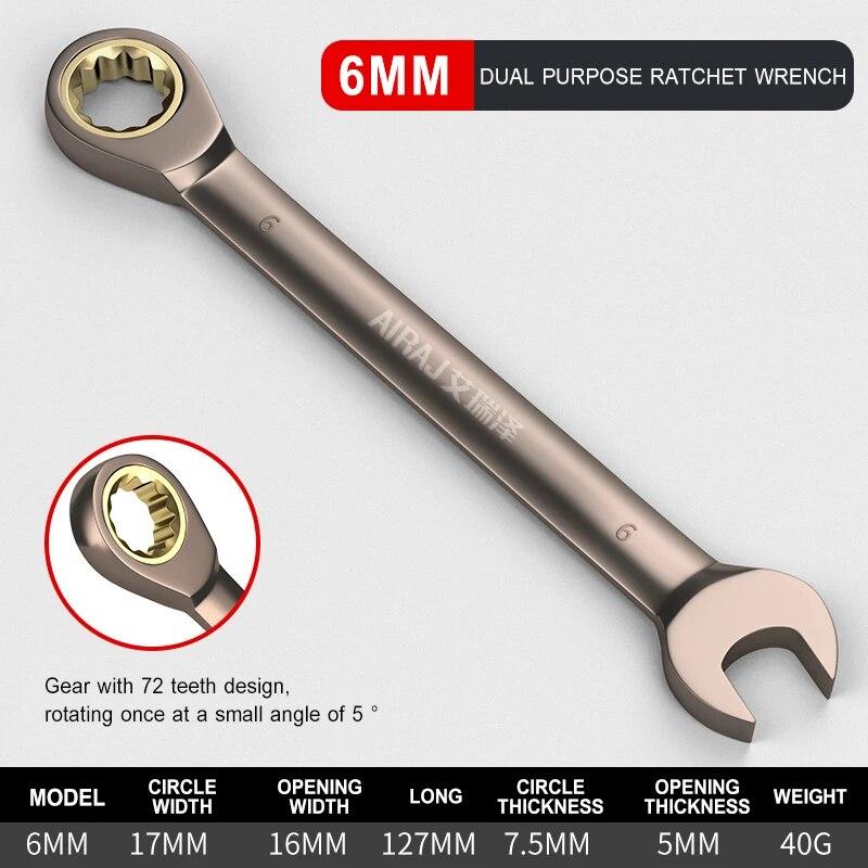 AIRAJ 6/8/10 мм усиленный гаечный ключ с храповым механизмом, инструменты для ремонта автомобиля, большое отверстие, двойной назначения, высококачественные ручные инструменты, гаечный ключ