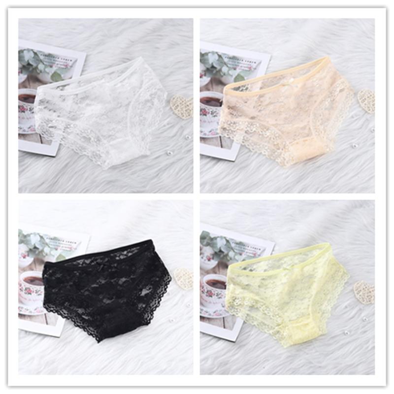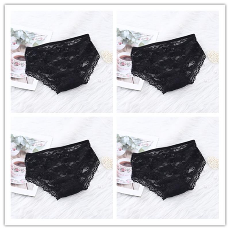 Сексуальные кружевные трусики для девочек, дышащее нижнее белье с вырезанным узлом-бабочкой, трусики средней высоты с открытой талией, однотонные женские треугольные трусики