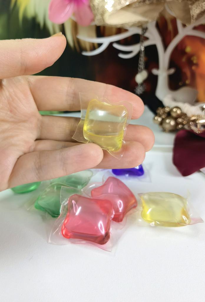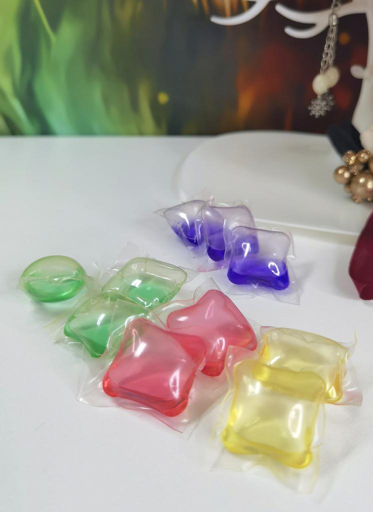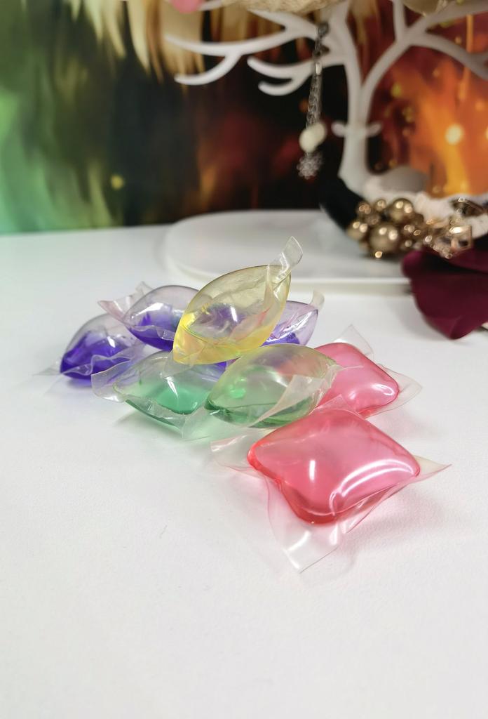 Капсулы для стирки белья 10 штук Внутри капсул гель для стирки На стирку требуется 2-3 капсулы Отстирывают хорошо, запах приятный Запах не зависит от цвета капсулы