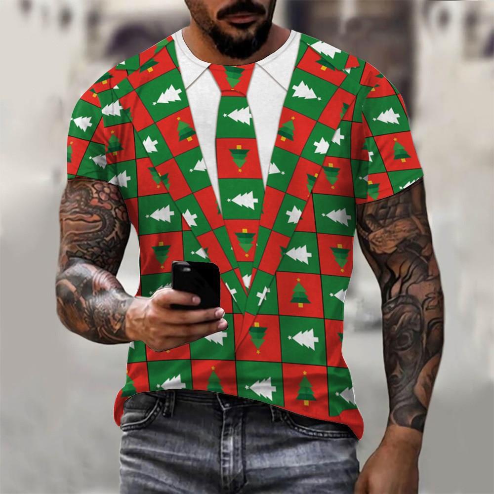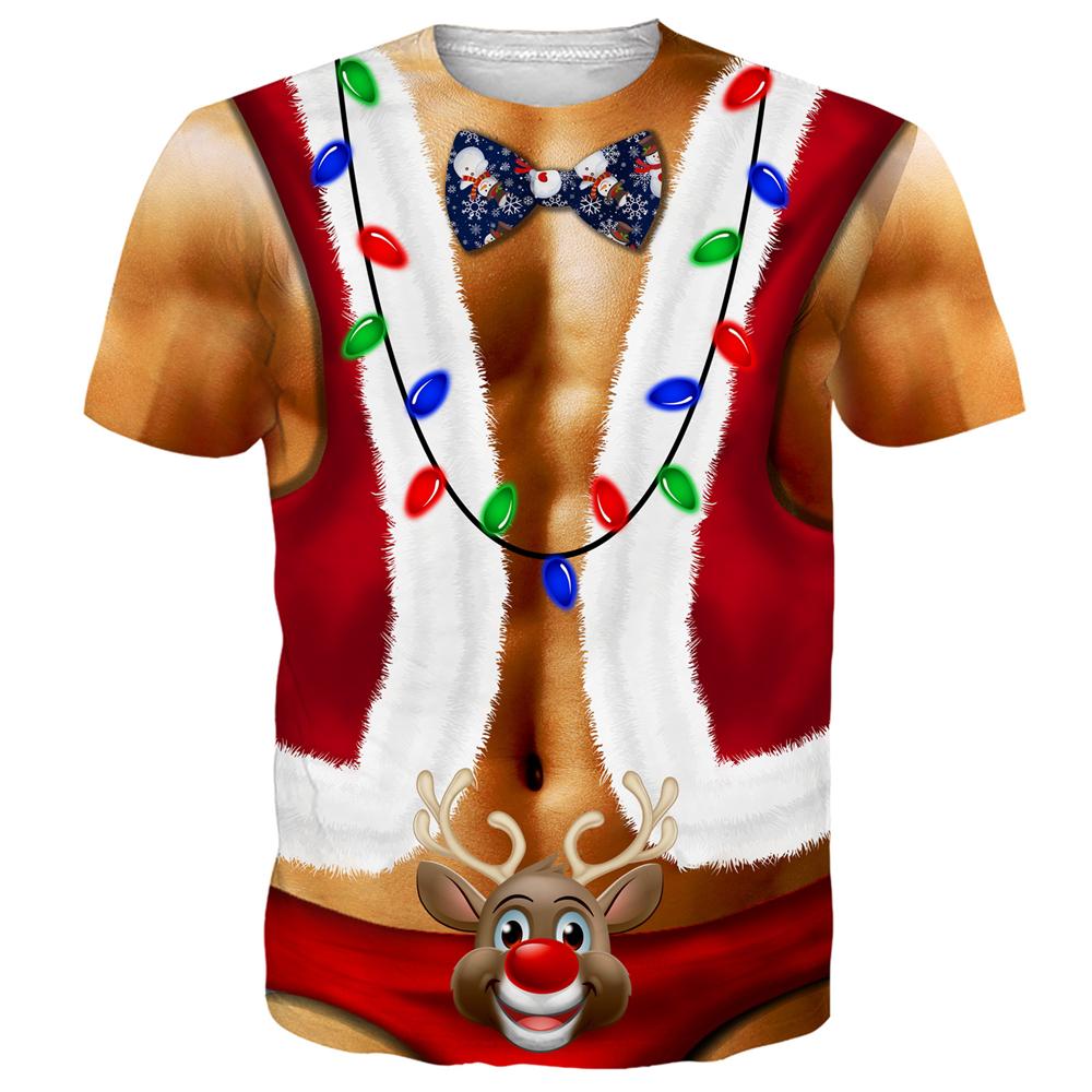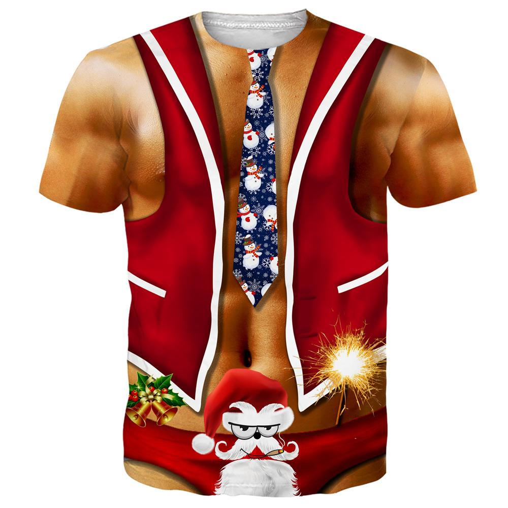 Funny Christmas T-Shirt Men Top 3D Muscle Print Tee Short Sleeve O Neck Streetwear Male Oversized Shirts Casual Harajuku Clothes