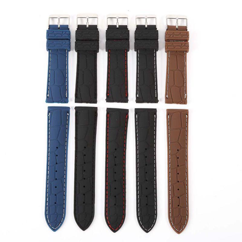 Силиконовый резиновый ремешок для часов с узором крокодила, коричневый, черный, 20, 22 мм, прочные ремешки для часов