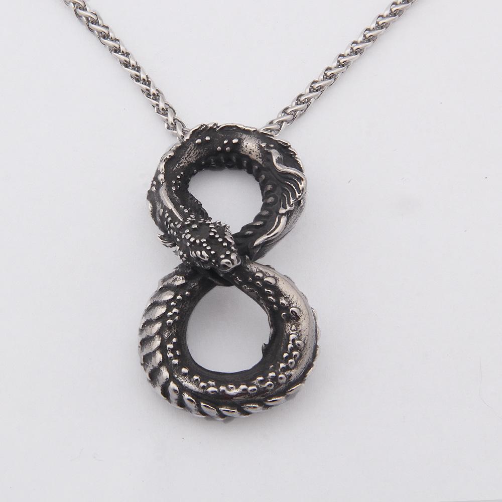 Ожерелье из нержавеющей стали с драконом Уроборосом - подвеска-амулет в виде змеи викингов с 3D-дизайном бесконечности для мужских панк-ювелирных изделий в подарок