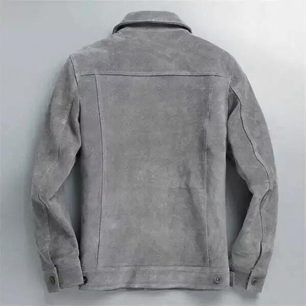 Кожаная куртка Trucker для мужчин, серая, чистая замшевая, рубашка на пуговицах, ручная работа, стильная, для вечеринки