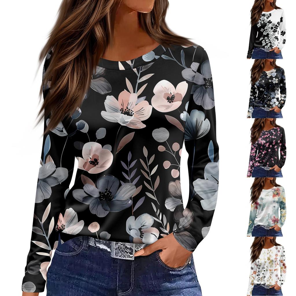 Женская модная повседневная свободная футболка с принтом и круглым вырезом с разрезом и длинным рукавом, женский топ — купить товар онлайн с бесплатной доставкой по всему миру!