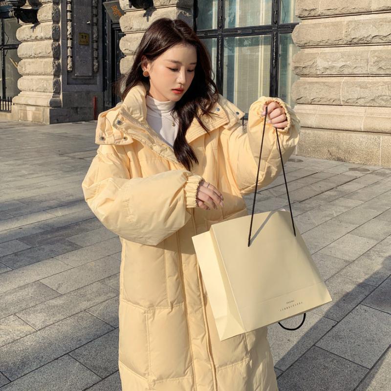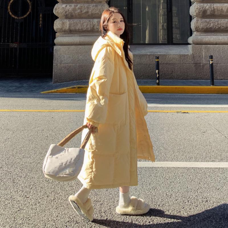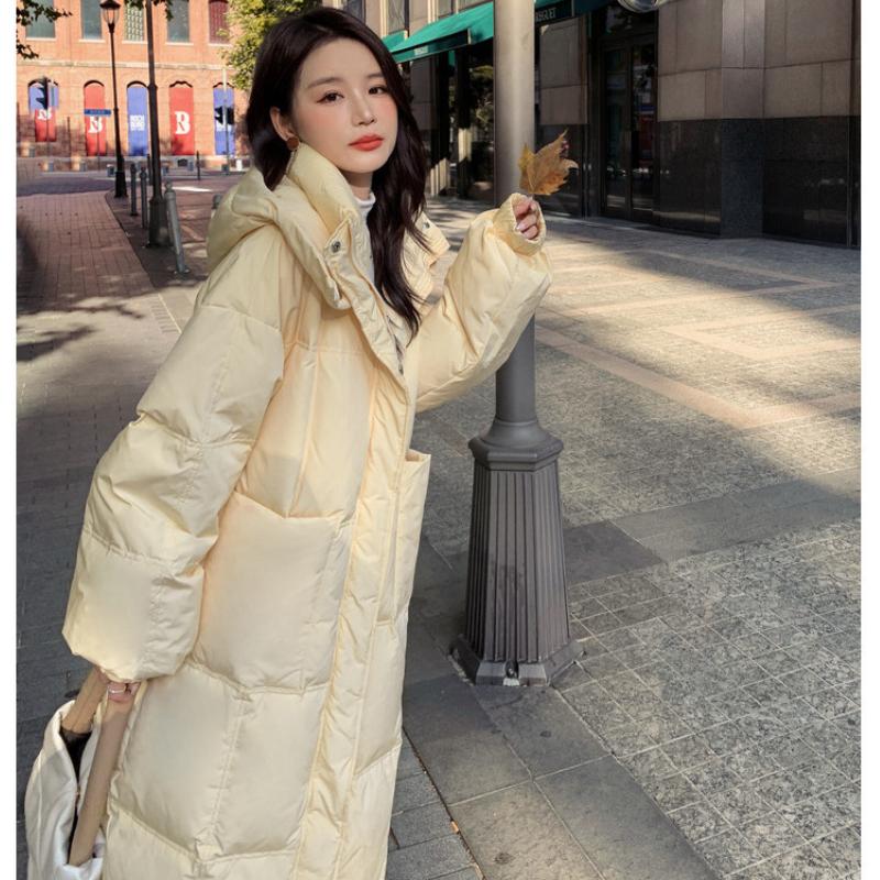 Однотонная женская куртка удлиненная 2024 осень и зима новая модная утолщенная свободная повседневная куртка с капюшоном