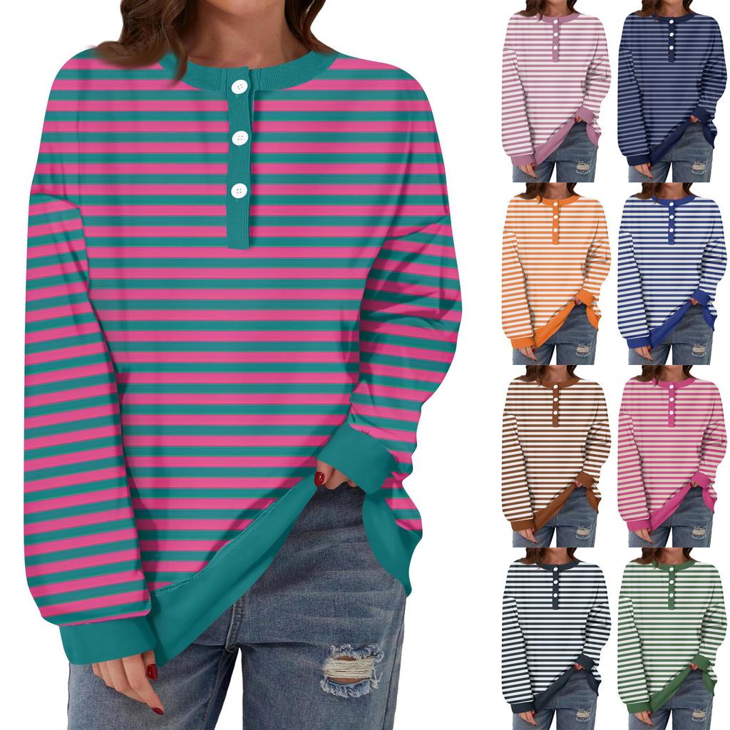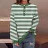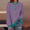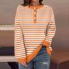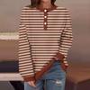Женская повседневная мода удобная полосатая футболка с длинным рукавом и круглым вырезом на пуговицах, свободный подол с боковыми разрезами