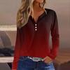 Женская футболка с принтом на пуговицах, длинный рукав, вязаный свитер, повседневный, модный, на выходные, базовый, с V-образным вырезом, обычный топ