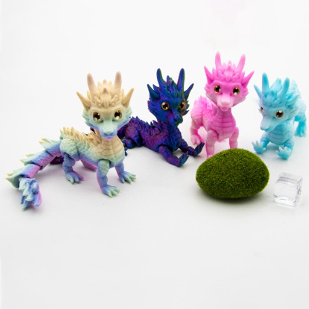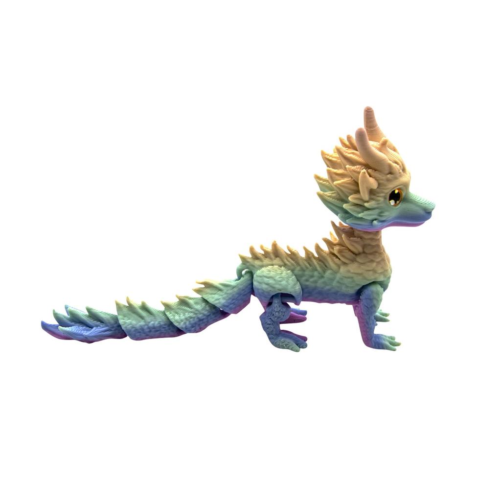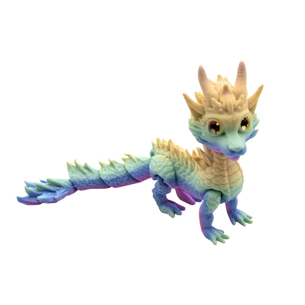 3D-печатный игрушечный дракон с длинной шерстью, разноцветный градиентный орнамент