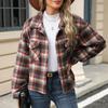 Женское и зимнее новое шерстяное пальто с длинным рукавом и карманами в клетку