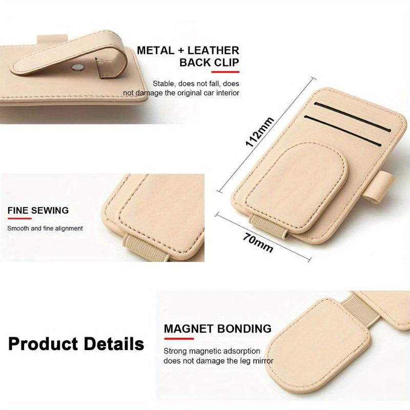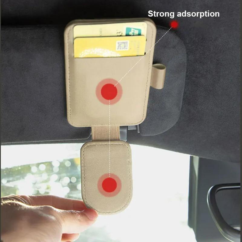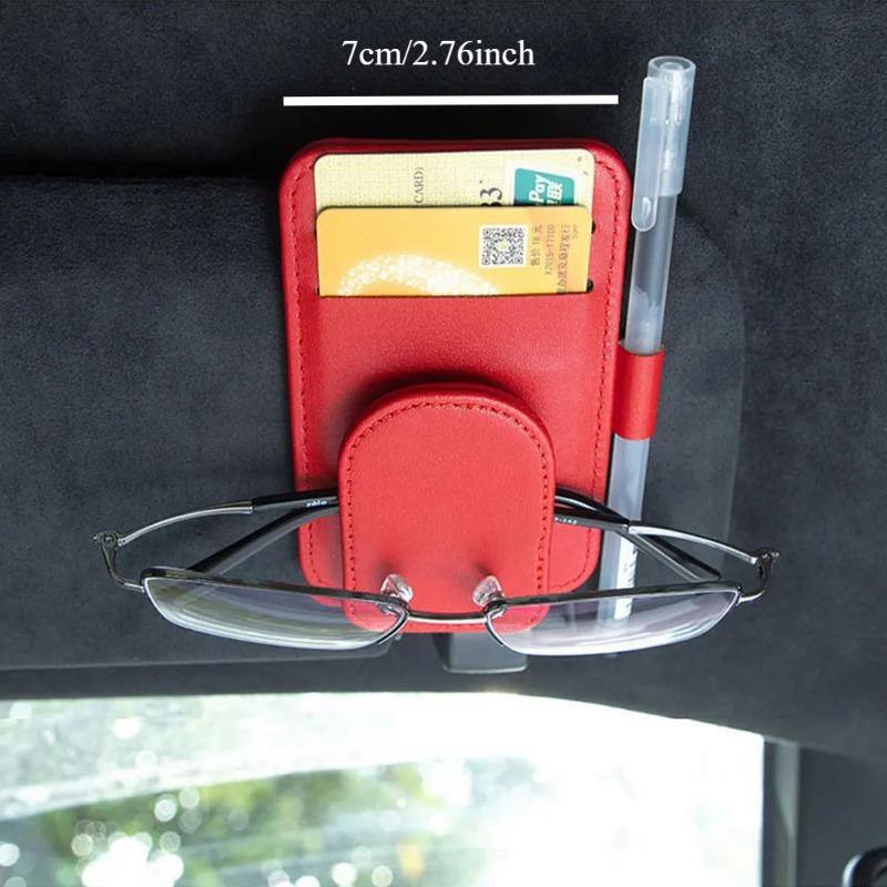 Многофункциональный держатель для очков из искусственной кожи для солнцезащитного козырька автомобиля, креативный чехол для хранения солнцезащитных очков с магнитным зажимом и ручкой, держатель для карт
