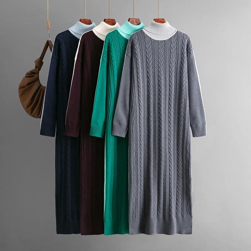 Зима 2024 Новое женское трикотажное теплое длинное платье-свитер женское осеннее модное свободное утолщенное трикотажное винтажное платье Vestido