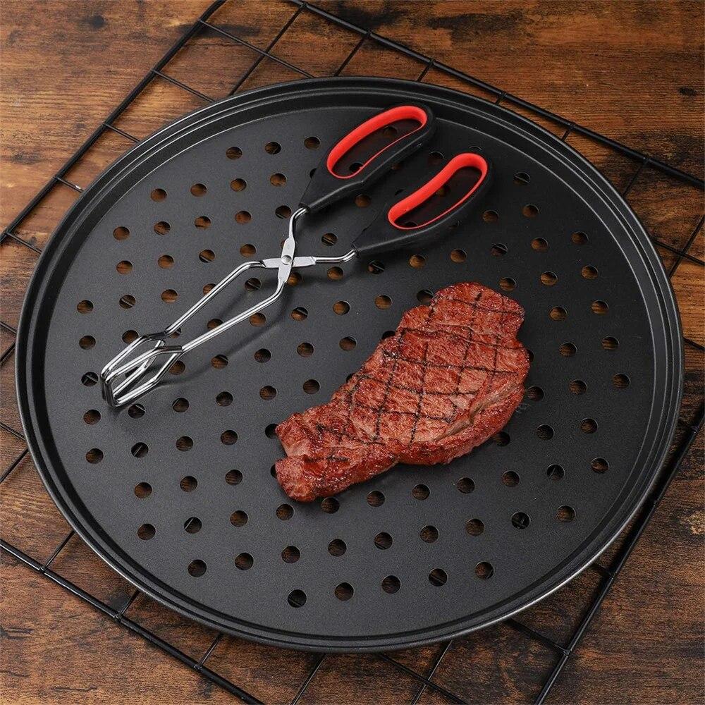 Перфорированная сковорода для пиццы из углеродистой стали с антипригарным покрытием Ro UndOven с отверстиями для приготовления пищи, держатель для посуды, инструмент для выпечки