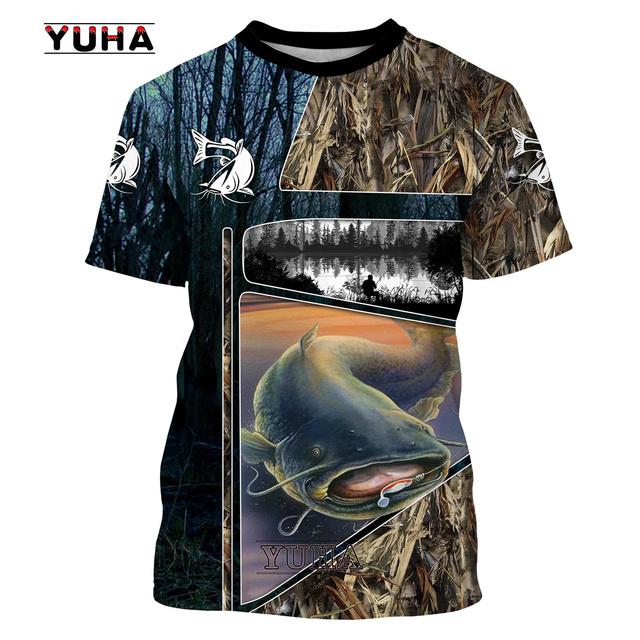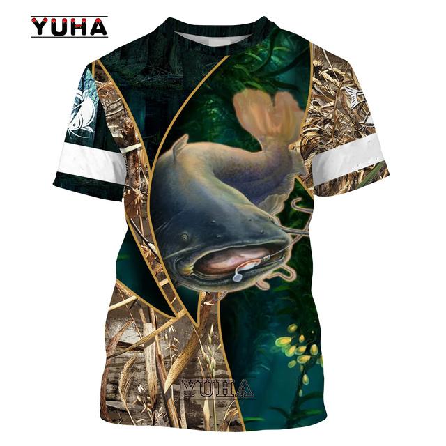 Камуфляж для рыбалки сома, мужская футболка с 3D принтом, крутая летняя повседневная футболка унисекс, подарок для рыбака