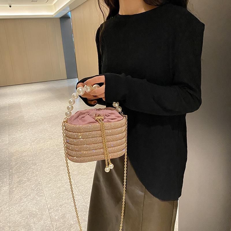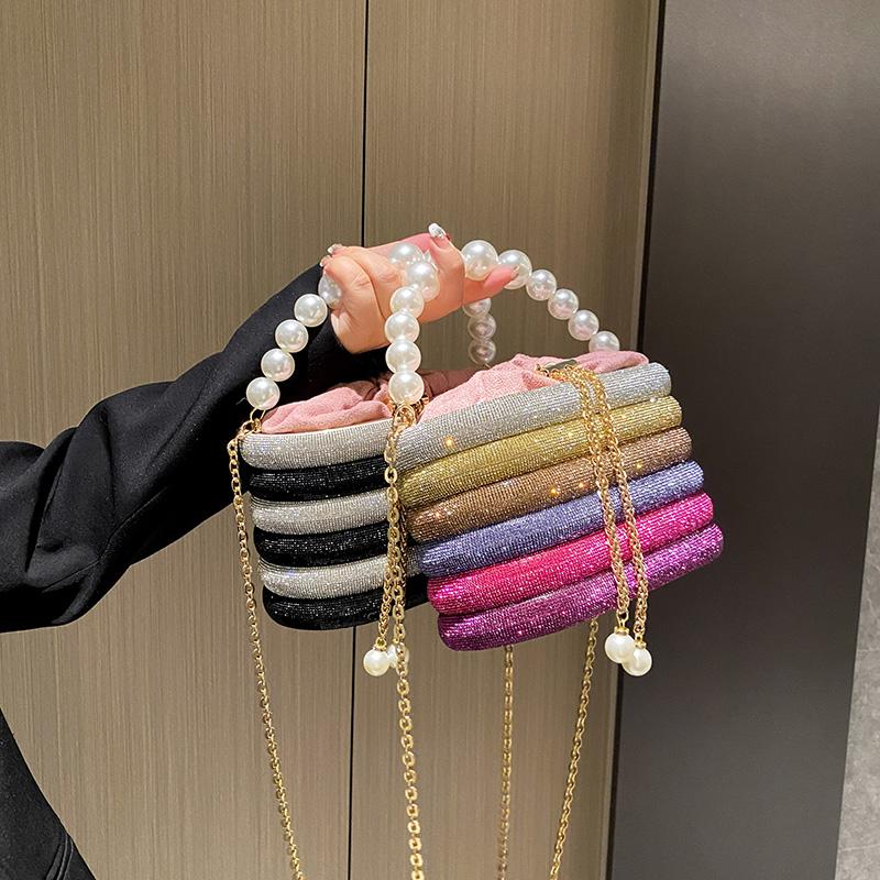 Роскошные вечерние сумочки для женщин Ослепительная жемчужная цепочка с бусинами Сумка через плечо Клатч для званого ужина Роскошные дизайнерские сумки
