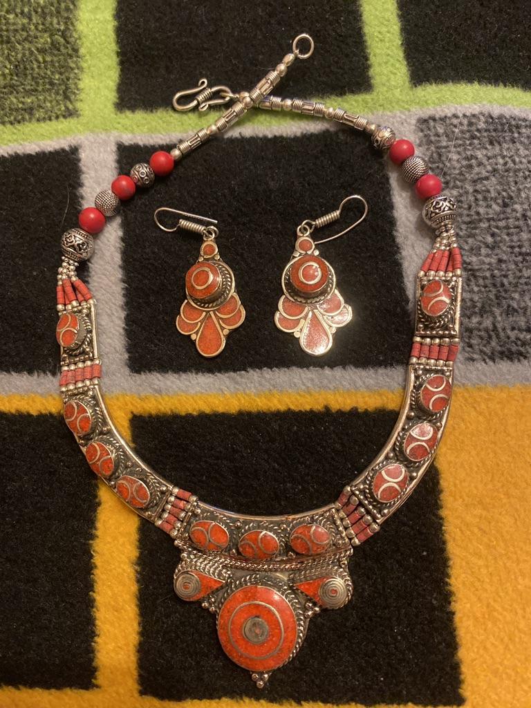 Колье купила к серьгам, всё сделано боле менее аккуратно, и колье и серьги тяжёлые.