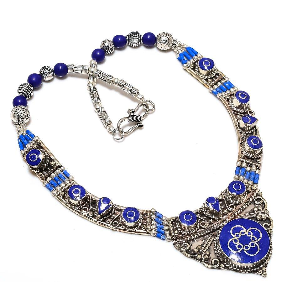 Natural Lapis Lazuli Gemstone Handmade Jewelry Necklace 18" K5a60