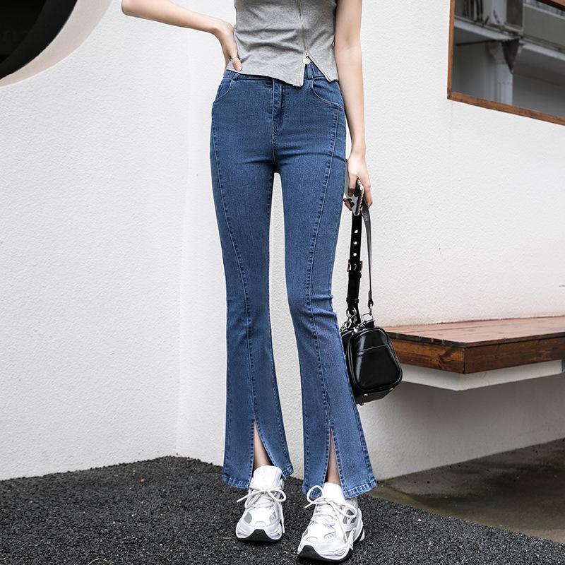 Женские джинсы-клеш с высокой талией и разрезами, обтягивающие, стретч, большого размера