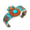 Браслет-манжета из натуральной тибетской бирюзы и коралловых камней, регулируемый, ручной работы g0G30