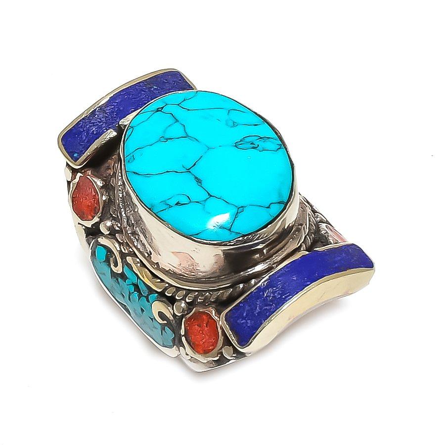 Натуральная тибетская бирюза, коралловый драгоценный камень, кольцо ручной работы, размер 10 A3U31