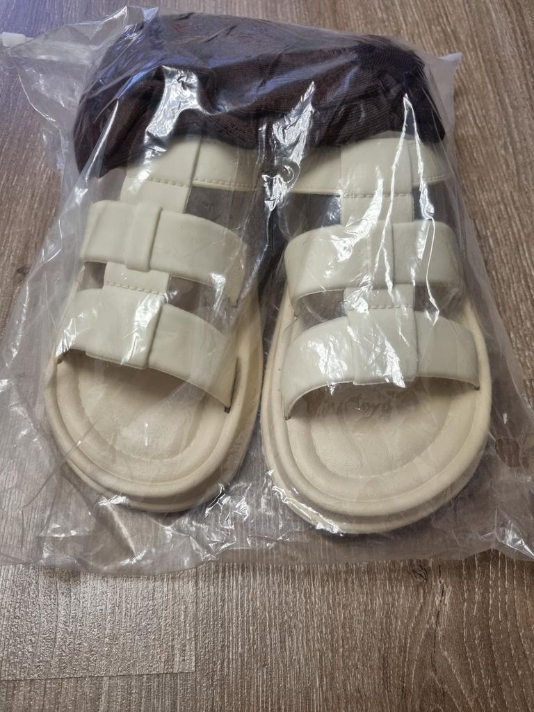 Удобные и стильные сандалии🥰а в подарок продавец положил пару качественных носков❤️ 🔸На выбор парочка расцветок, размеры: 36-40. На мне 39. На мою стопу 23,5 см подошли очень хорошо, пятка не торчит. 🔸Сандалии имеют простой и лаконичный дизайн, выполненный в кремовом цвете. 🔸Они отличаются толстой подошвой, что придает им современный и немного массивный вид. 🔸Ремешки, расположенные на подъеме стопы, обеспечивают надежную фиксацию и комфорт при ходьбе. 🔸Дизайн сандалий универсален и подойдет к разным стилям одежды, от повседневного до более нарядного. Рекомендую 👍 Ставлю ⭐ ⭐ ⭐ ⭐ ⭐ Большое спасибо продавцу ❤️ и Joom ❤️