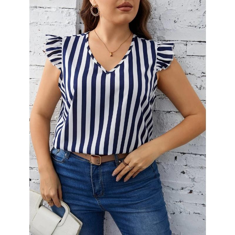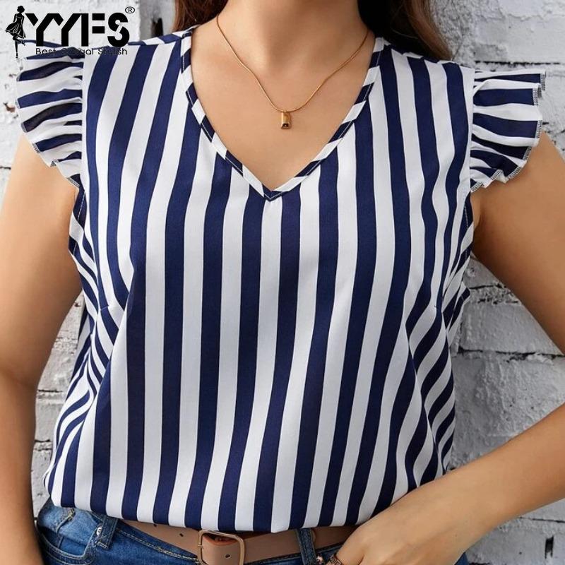 YYFS Женские модные повседневные летние весенние блузки и рубашки без рукавов с v-образным вырезом в полоску и принтом