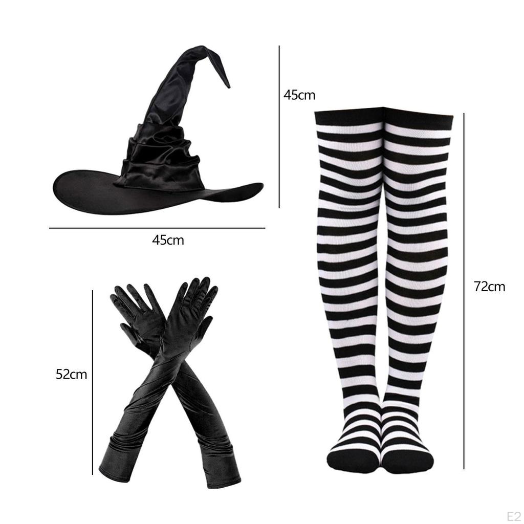 - 【Идеальный аксессуар】: Остроконечная шапочка и полосатые колготки дополнят любой костюм ведьмы, так что вы сможете вдоволь насладиться весельем вечеринки.