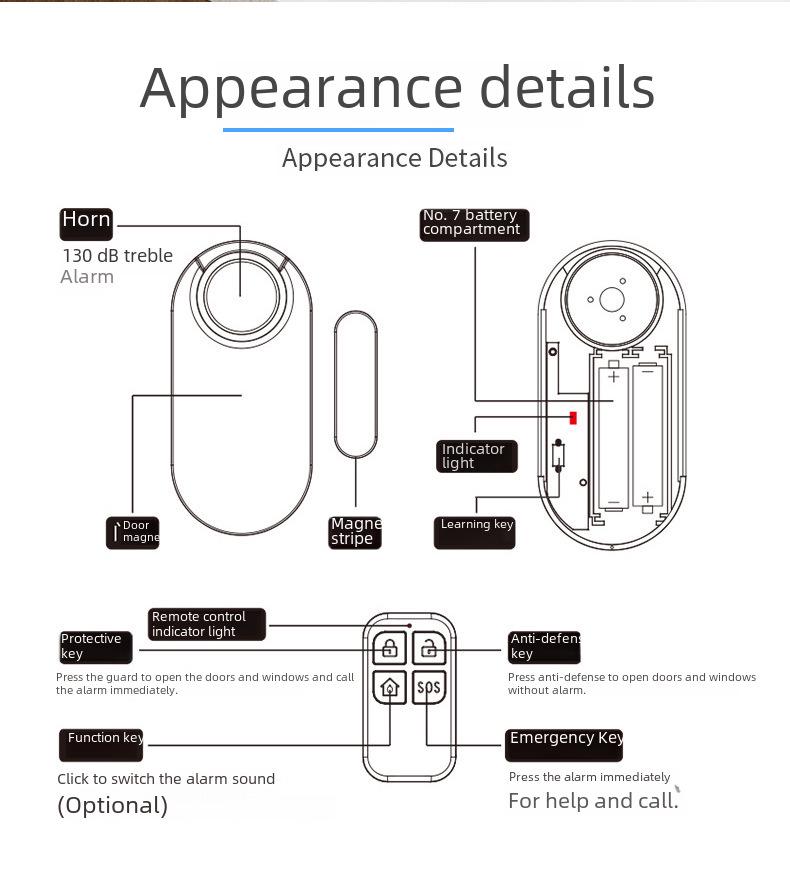 Беспроводная многофункциональная дверная и оконная магнитная сигнализация с дистанционным управлением для безопасности дома