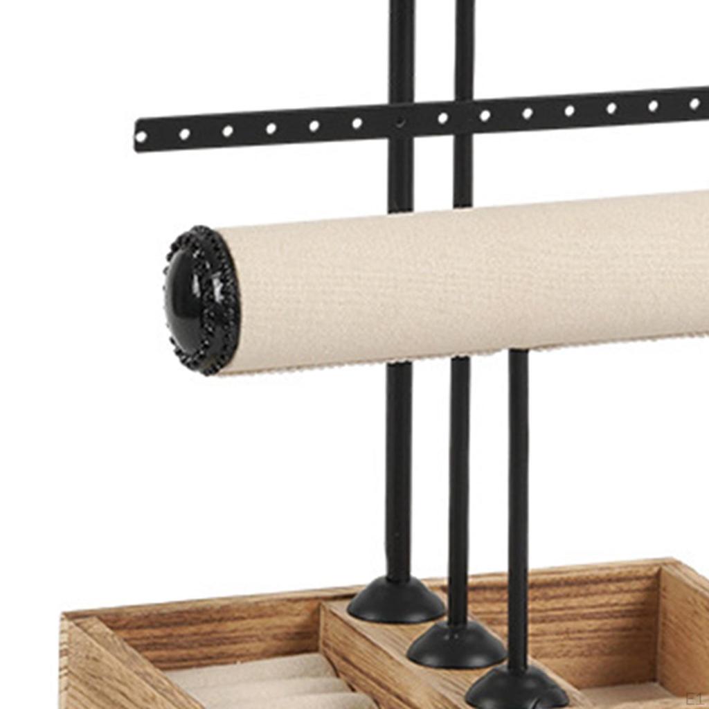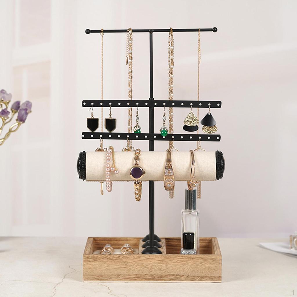 - 【Стеллаж для хранения ювелирных изделий】Подставка для ожерелий, сережек, браслетов, изготовлена из цельного металла с прочным деревянным основанием, модная и элегантная.
