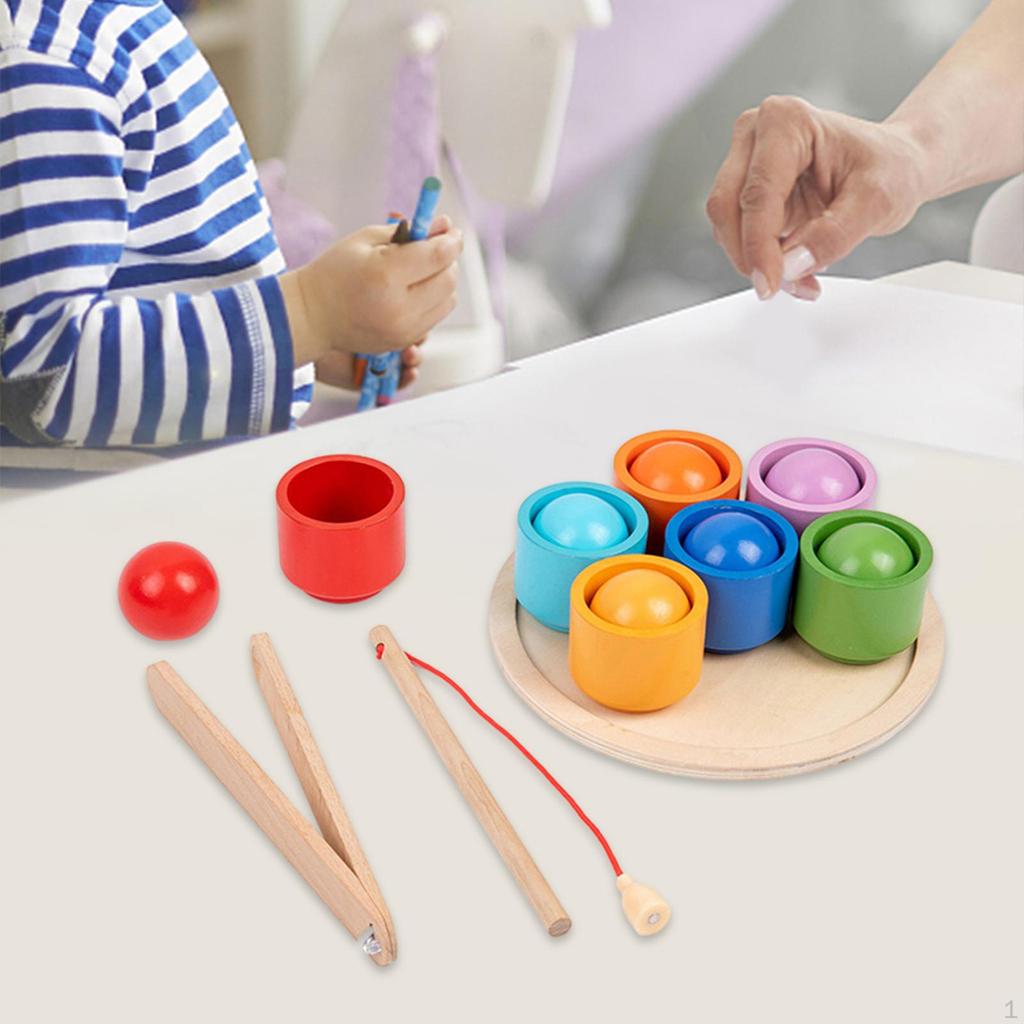 - 【Игра в рыбалку】: Деревянная парная игрушка. Существует два способа тренировки координации рук и глаз: захват мяча с помощью рыболовных мячей, отработка щипков.