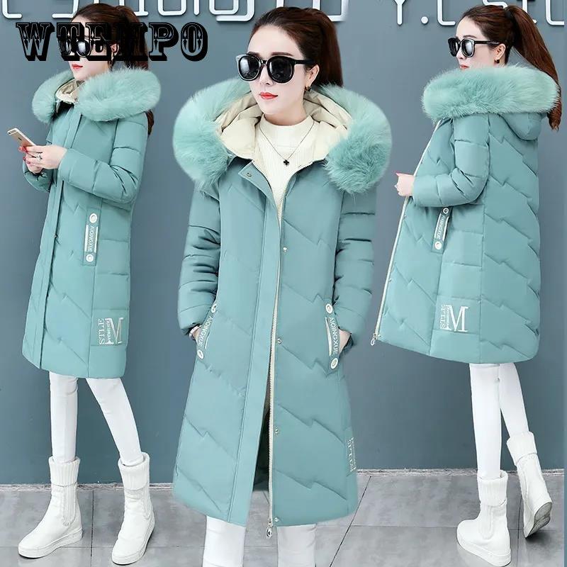 Пуховик зимняя корейская мода с большим меховым воротником средней длины с капюшоном толстая теплая куртка большого размера подходит для женщин