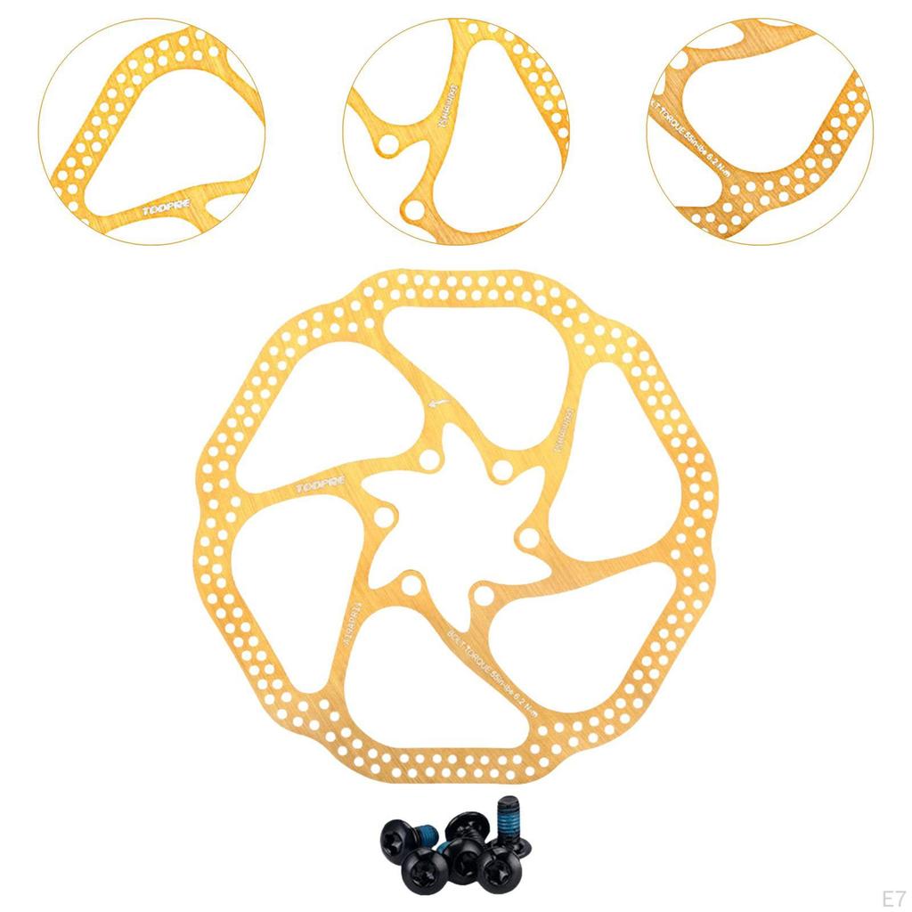 - 【ЛЕГКИЙ】: Полая конструкция, ротор дискового тормоза велосипеда более удобен и легче, чем другие тормозные роторы, стабильная высокая производительность.