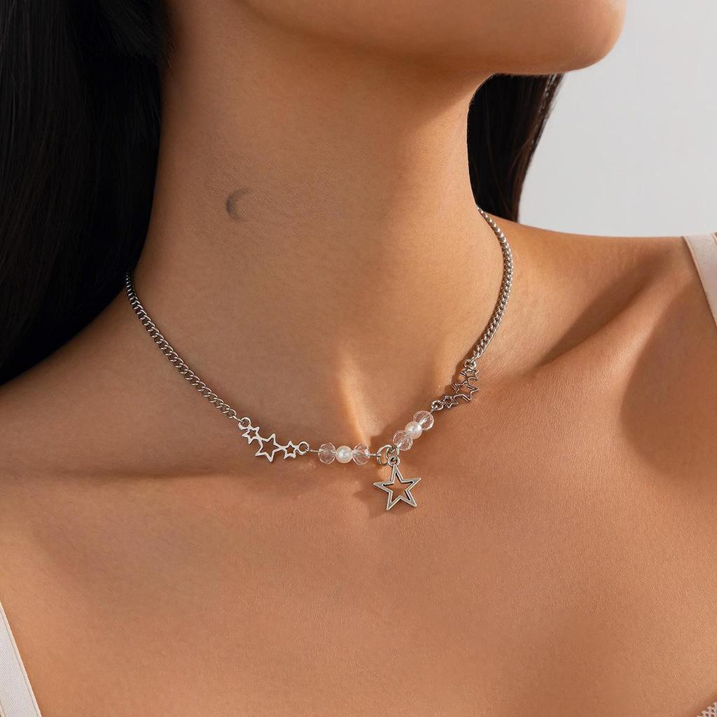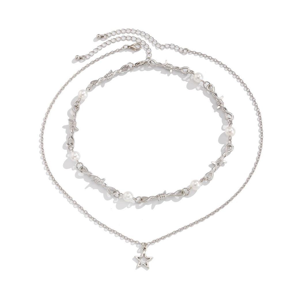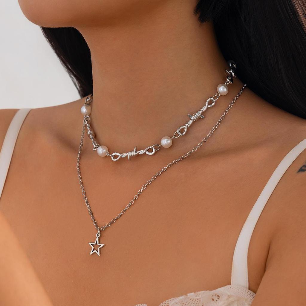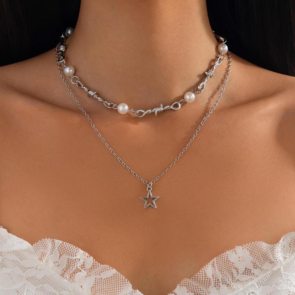 Стильное многослойное ожерелье из сплава жемчуга и звезд