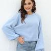 Женский короткий однотонный вязаный свитер с круглым вырезом и длинными рукавами из шенилла, свободный базовый свитер